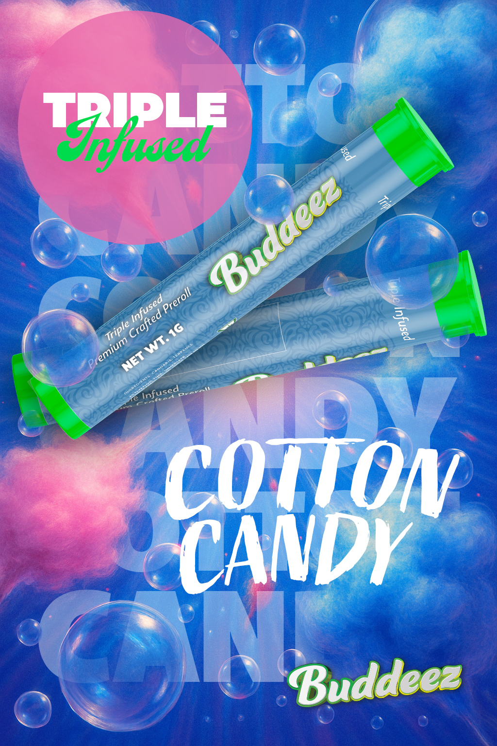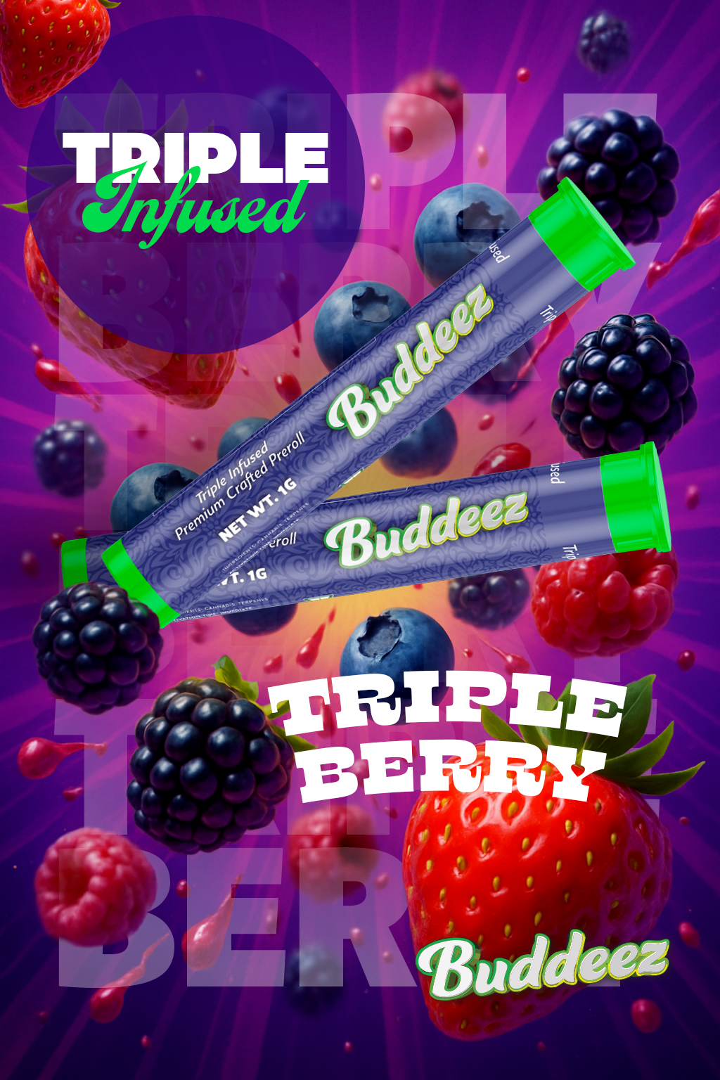 Spark & Zen designed Instagram ads, vectorized a logo, product label design, branding and more for the new up and coming Buddeez triple infused pre-roll.