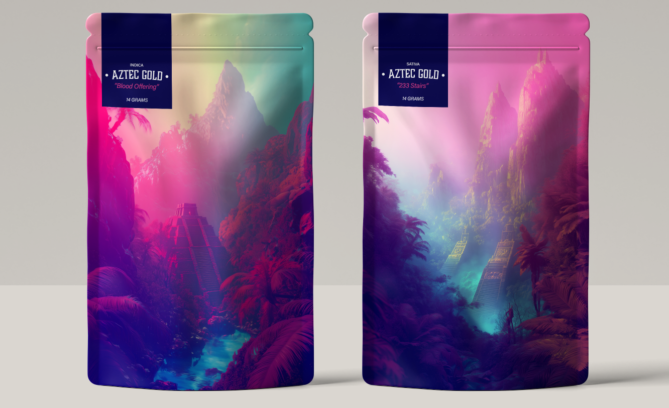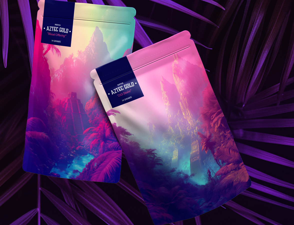 AZTEC GOLD is a small farm specializing in specific strains. We had fun designing colorful and vibrant packaging and merch for this emerging brand.